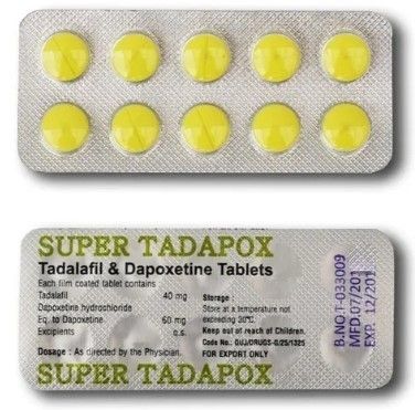 Super Tadapox – препарат с комплексным действием для улучшения репродуктивного здоровья мужчин от 18 до 65 лет. Эректильная дисфункция часто сопровождается преждевременной эякуляцией. В таблетках Супер Тадапокс содержится 2 активных вещества – тадалафил для качественной эрекции и дапоксетин для длительного секса. Страна-производитель – Индия.